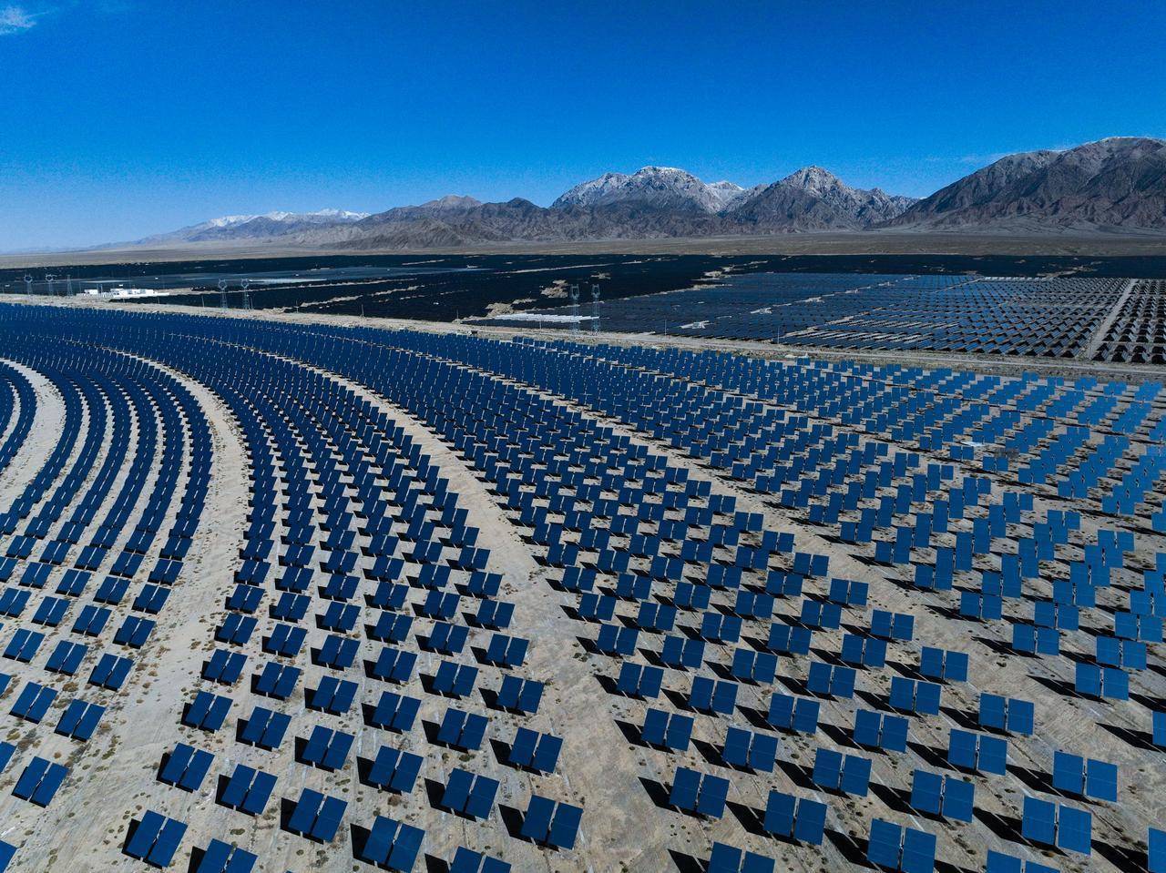 在海西州格尔木市一处广袤戈壁上,全球单机规模最大、镜场反射面积最大、储能规模最大、年设计发电量最高的光热项目正在火热建设中。