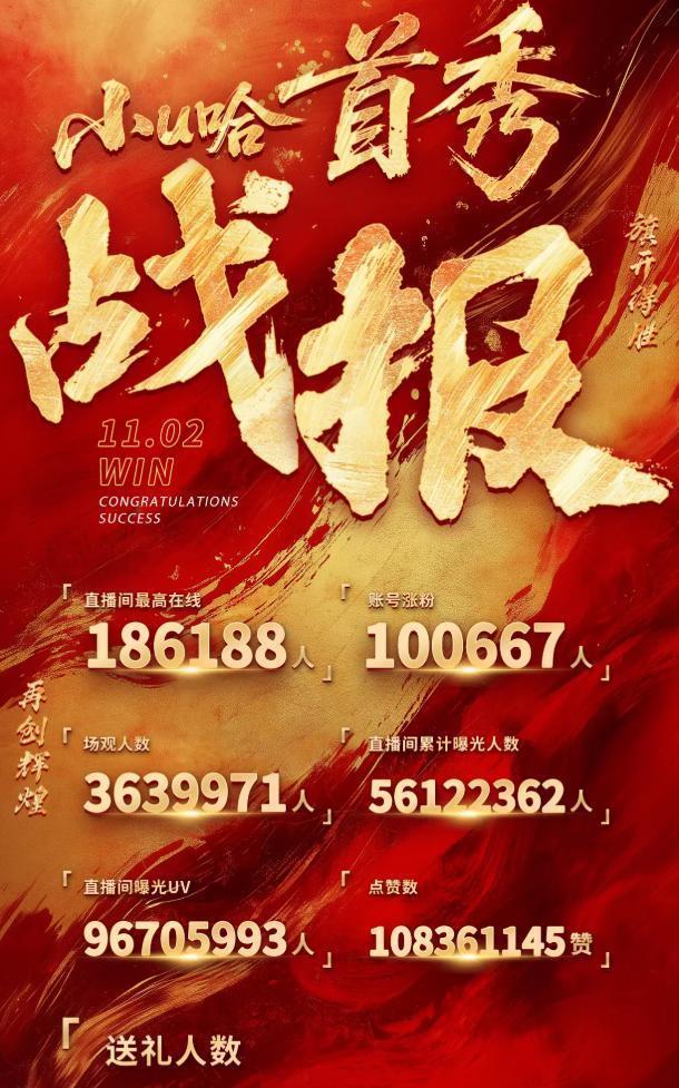 随后哲领传媒也晒出了小U哈的首秀数据,除了70万人送礼物之外,最高在线人数高达18W人,场观人数达到了363W,直播间曝光更是差点破亿,只能说这一次哲领传媒真的是签到了一个宝藏级的主播,这一次真的是赚麻了。