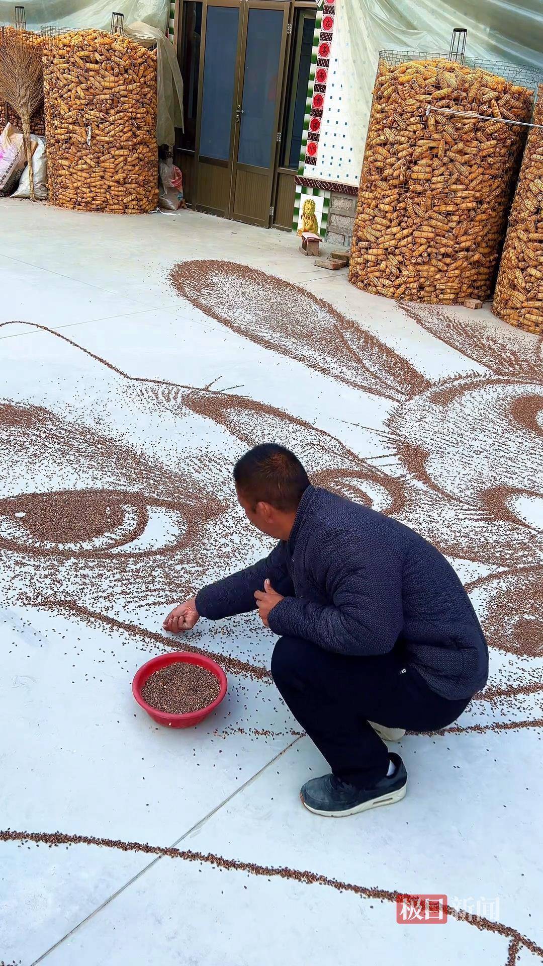 2024年9月7日,他第一次把在院子里作谷物画的过程和作品,上传至互联网简配资,没想到收获了“泼天的流量”。此后,他都会在农闲时,用黑小麦、玉米等谷物,拼出时下流行的形象,如袁隆平、周星驰、雷锋等人物形象,三星堆文物、长城、航母等实物形象,《沉默的荣耀》中的吴石、陈宝仓、朱枫等影视角色形象,还有《哪吒》中的哪吒、申公豹、《疯狂动物城》中的狐狸、兔子等。